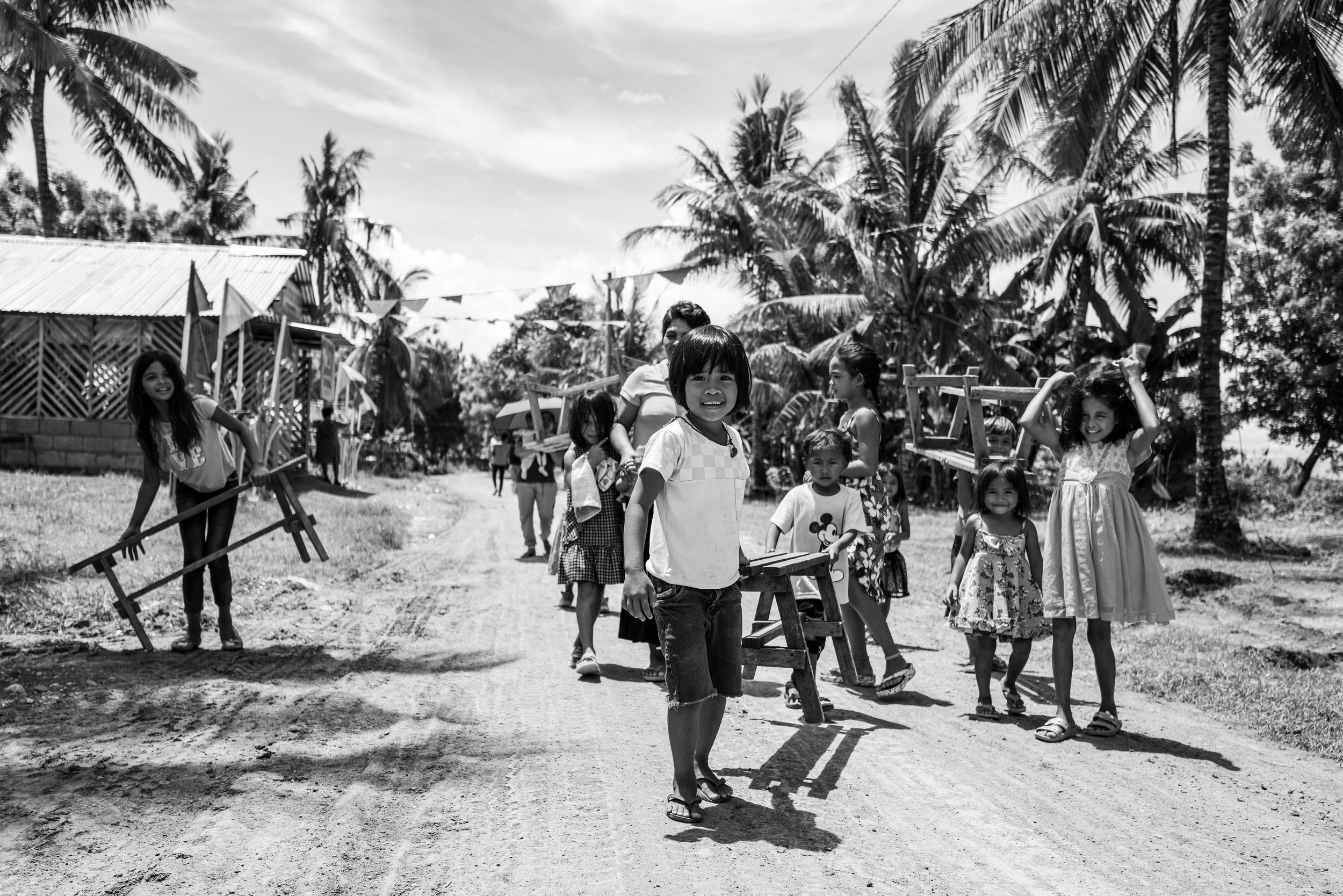Limited resources require worshipers to bring their own chairs to and from local churches when attending Sunday service.